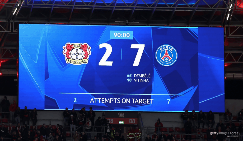 - 경기 결과: PSG 7 – 2 레버쿠젠 (원정 대승)