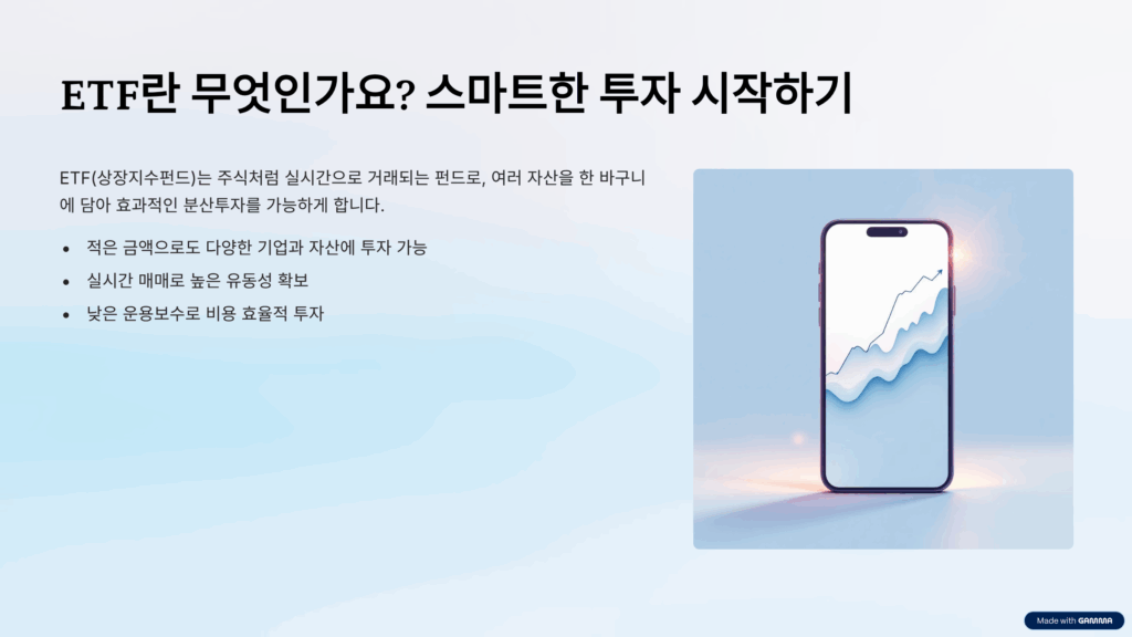 예를 들어, 삼성전자에 투자하고 싶다면 개별 주식을 직접 사야 하지만, 코스피200 지수를 추종하는 ETF를 매수하면 삼성전자를 포함한 대한민국 대표 기업 200곳에 자동으로 분산투자하게 됩니다. 이러한 구조는 특정 기업의 위험을 줄여주면서도 시장 전체의 성장 이익을 추구할 수 있게 돕습니다.