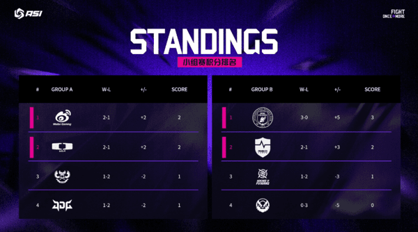 이로 인해 1조는 혼전 끝에 Dplus KIA와 **Weibo Gaming TapTap**이 2승 1패로 4강에 진출했습니다.