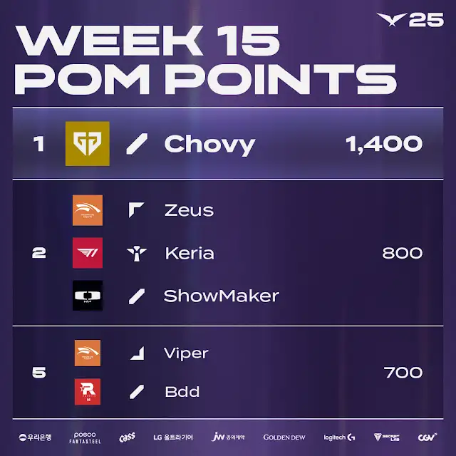 🏆 2025 LCK 시즌 POM 순위 및 MVP