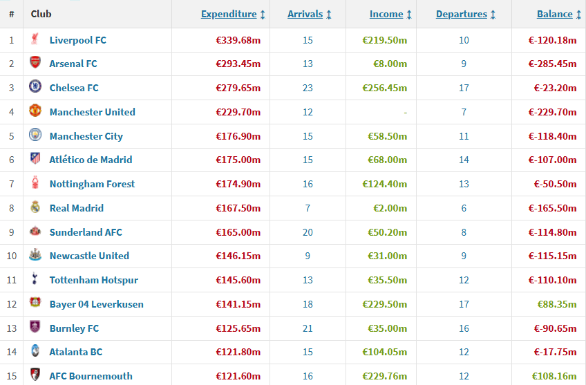 이러한 현상의 중심에는 몇몇 클럽들의 과감한 투자가 있었습니다. 그 중에서도 리버풀은 알렉산데르 이사크 영입을 포함해 총 4억 1,500만 파운드(약 7,800억 원)를 지출하며 단일 시즌 클럽 최고 지출 기록을 세웠습니다. 반면 첼시는 선수 매각을 통해 막대한 수익을 올리며 순지출은 오히려 적게 기록하는 영리한 행보를 보였습니다.