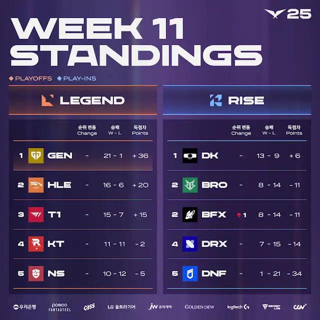 또한, 라이즈 그룹에서도 디플러스 기아(DK)가 선두를 굳히고 있지만