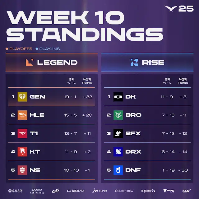 이번 LCK 3라운드부터 레전드 그룹과 라이즈 그룹으로 나뉘어 진행됩니다.