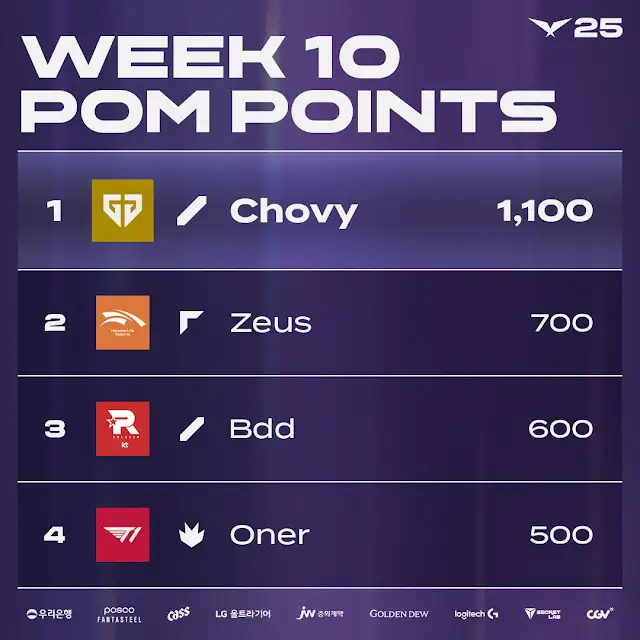 🚀 LCK 3R 1주차(10주차) 팀 및 POM 순위!